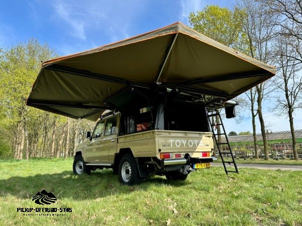 Auf Anfrage und gegen Aufpreis kann die 270Grad-Markise auch mit Dachzelteingang geliefert werden.